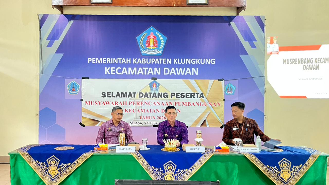 DAWAN – Pemerintah Kecamatan Dawan sukses menyelenggarakan Musyawarah Perencanaan Pembangunan Tingkat Kecamatan (Musrenbangcam) Tahun 2027. Kegiatan yang merupakan agenda tahunan ini berlangsung pada hari Rabu, 24 Februari 2026, bertempat di Ruang Rapat Purna Sabha Kantor Camat Dawan. Acara ini dihadiri langsung oleh Bapak Bupati Klungkung, anggota DPRD Dapil Dawan, seluruh Organisasi Perangkat Daerah (OPD) terkait, … Baca Selengkapnya